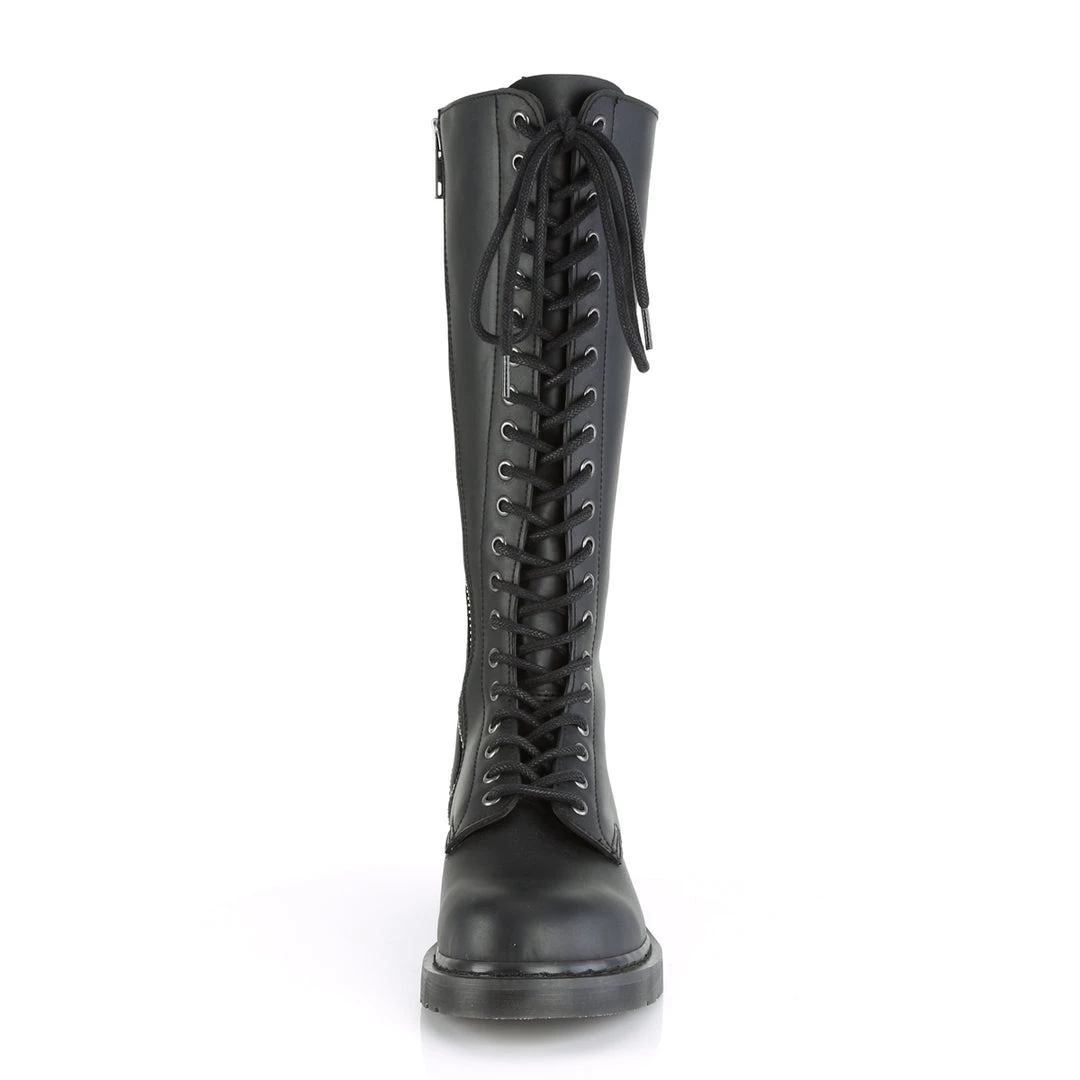 1 1/4″ (32mm) Stacked Flat Heel 20-Eyelet Lace-Up Knee High Unisex Vegan Boot w/ Back Pull-Tab, Full Length Inside Zip Closure