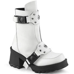 2 3/4″ (70mm) Chunky Heel, 1″ (25mm) Platform Ankle Boot, Featuring Eyelet and Studded Straps w/ Quick Release Plastic Buckle, Inside Metal Zip Closure