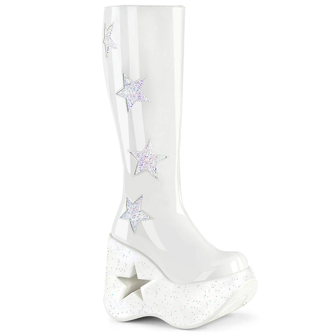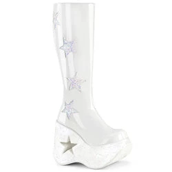 5″ (127mm) Star Cutout Platform Wedge Knee High Boot Featuring Glitter Star Side Patch Details, Inside Metal Zipper