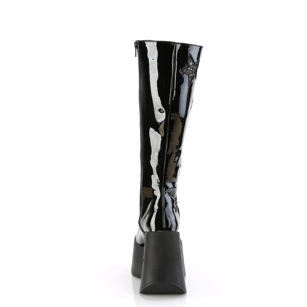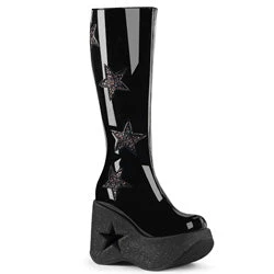 5″ (127mm) Star Cutout Platform Wedge Knee High Boot Featuring Glitter Star Details on the Outer Shaft & Mini Iridescent Glitter on the Entire Platform Bottom, Inside Metal Zip Closure
