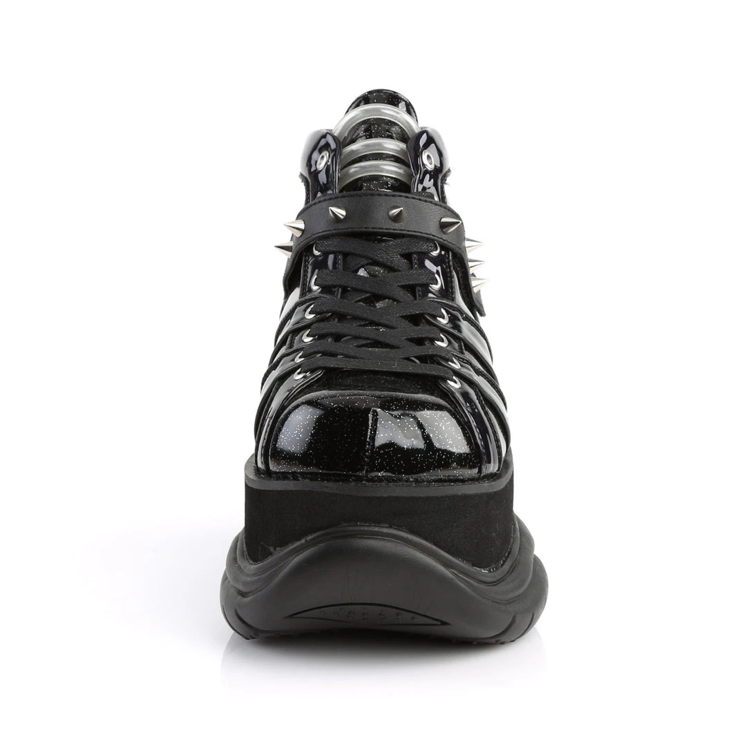 3″ (76mm) Platform Lace-Up Shoe Featuring Hook N’ Loop Ankle Strap w/ Cone Studs and UV Reactive Tubing on Tongue