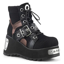 3 1/2″ (89mm) Front & Back Metal Plated Platform Lace-Up Ankle Boot w/ Grommet Buckle Strap and an Oversize Grommet on Tongue