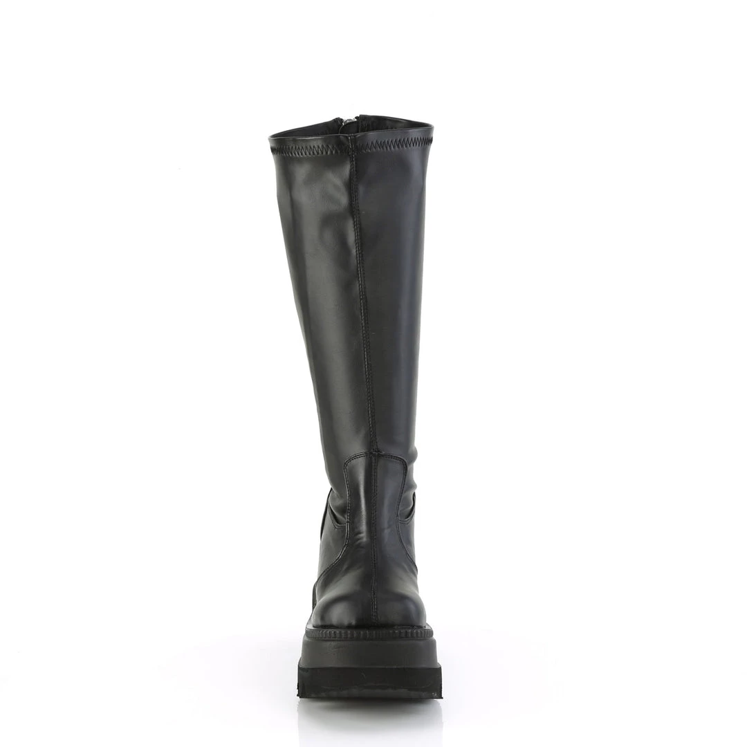 4 1/2″ (114mm) Wedge Platform Stretch Wide Calf Knee High Boot , Full Length Back Metal Zip Closure