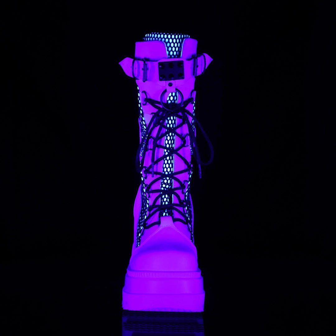 4 1/2″ (114mm) Wedge Platform Lace-Up Mid-Calf Boot W/ Curvy Contrast Panel Designs on Vamp, Featuring Horseshoe Ring Ornament and Buckle Strap W/ Spike Studded Metal Plate and A Large O-Ring, Metal