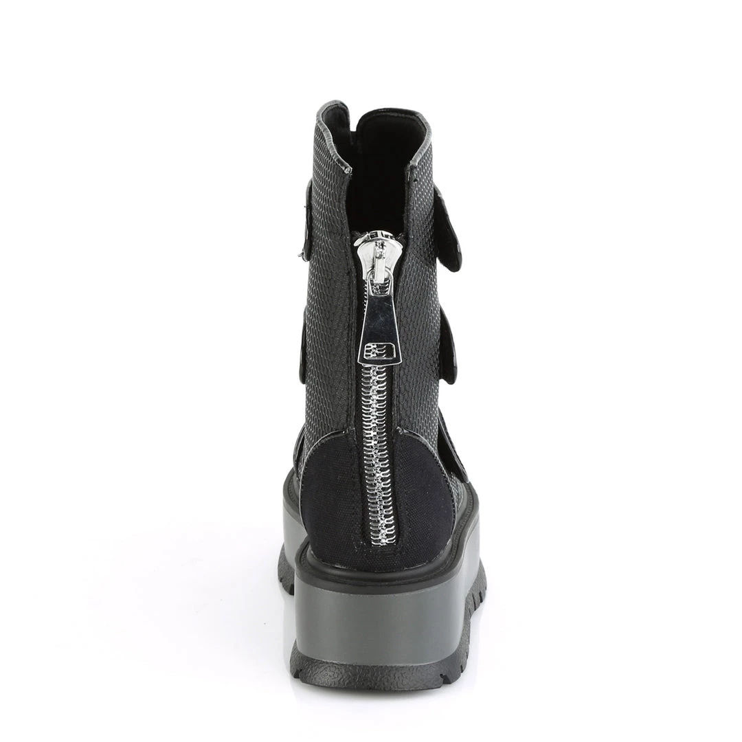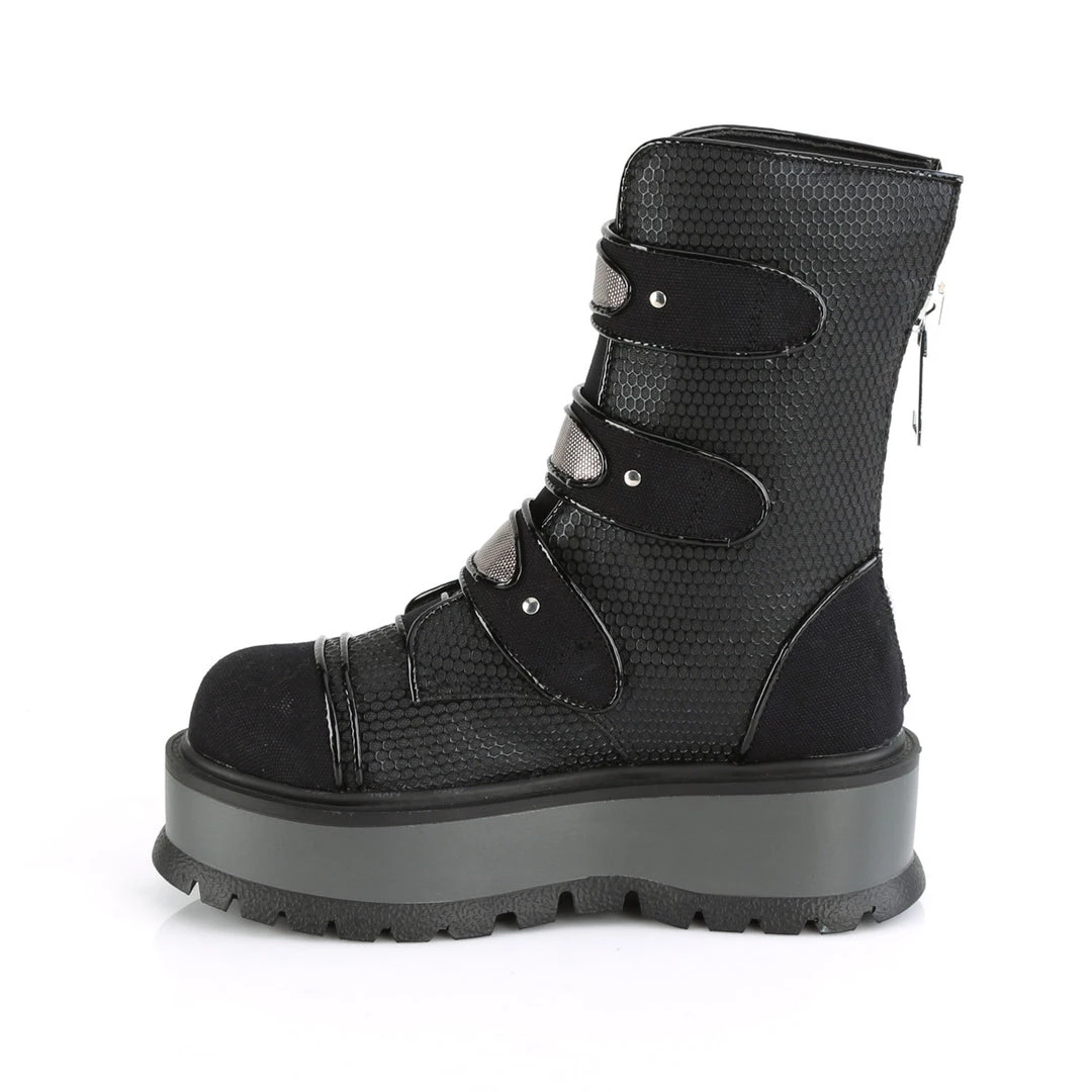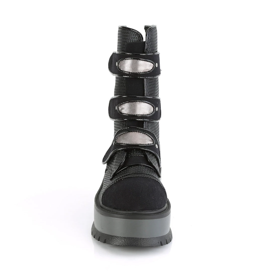 2″ (51mm) Platform Lace-Up Front Mid-Calf Boot Featuring 3 Touch Fast Straps w/ Stud & Metallic Oval Details, Back Metal Zip Closure