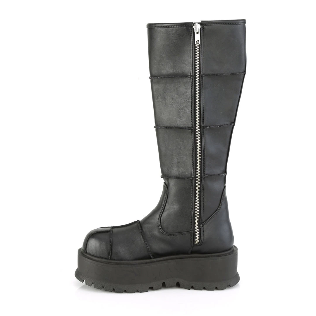 2″ (51mm) Platform Knee High Boot w/ Patching Details, Full Length Inside Metal Zip Closure