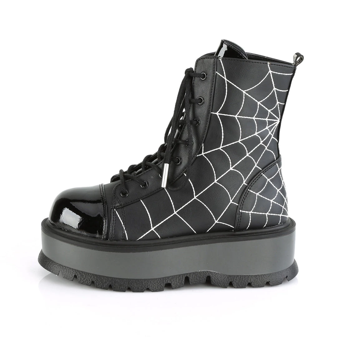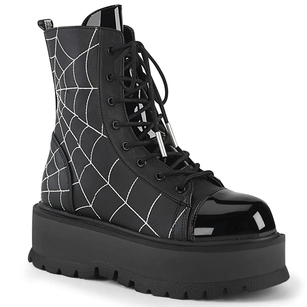 2″ (51mm) Platform Lace-Up Front Ankle Boot Featuring Embroidered Spider Web Detail
