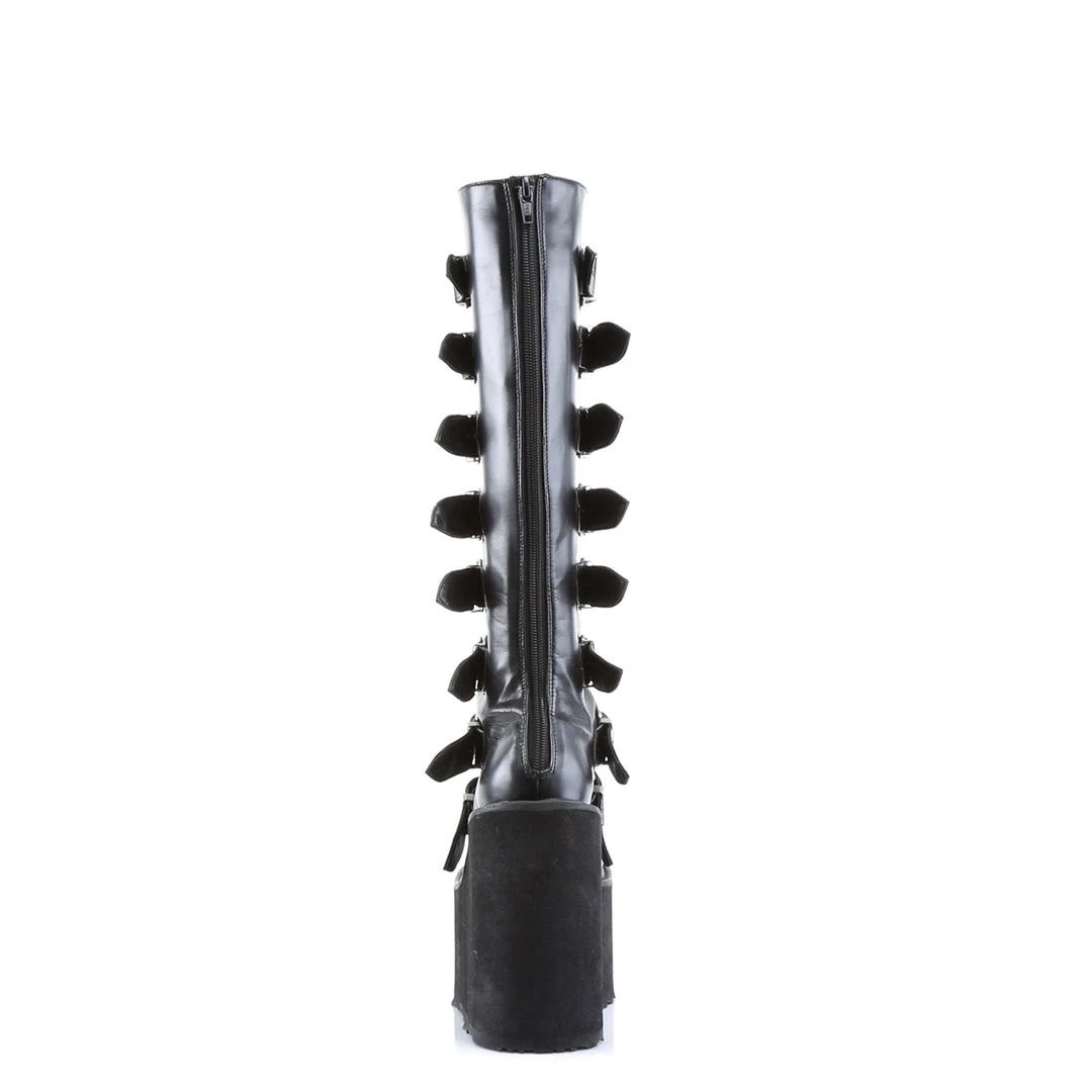 5 1/2″ (14cm) Wedge Platform Goth Punk Gogo Knee Boot with Metal Plates, Full Back Zipper