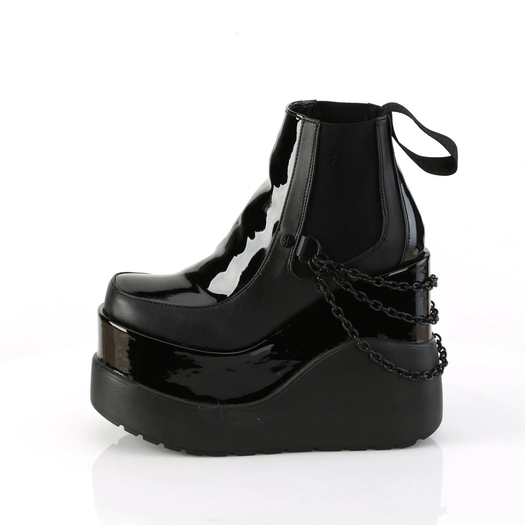 5″ (127mm) Wedge Tiered Platform Chelsea Style Ankle Boot w/ Elastic Side Panels & Swivel Hook Cascading Chain Detail