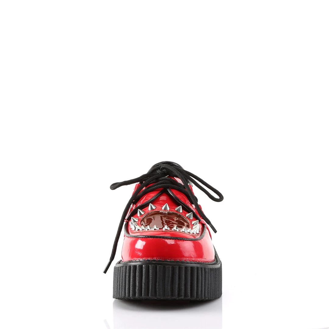 2″ (51mm) Platform Creeper Featuring See-Through Heart Cutout Design, D-Ring Lace, Pointed Studs and Piping Detail