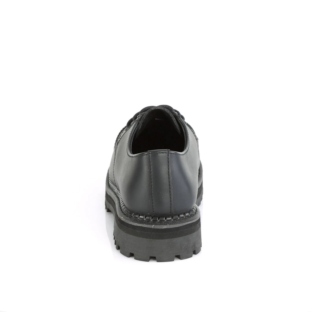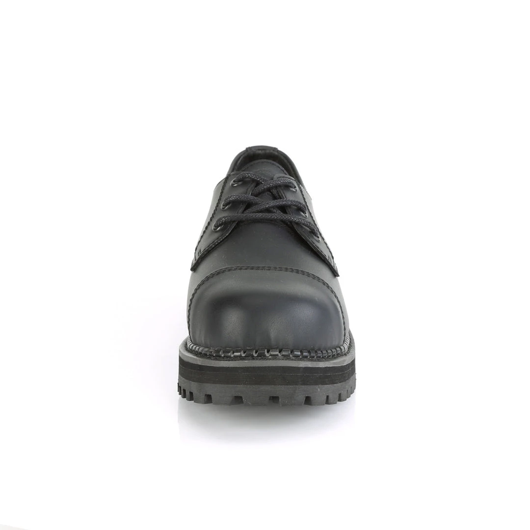 Demonia 3 Eyelet Unisex Vegan Steel Toe Classic Shoe, Rubber Sole