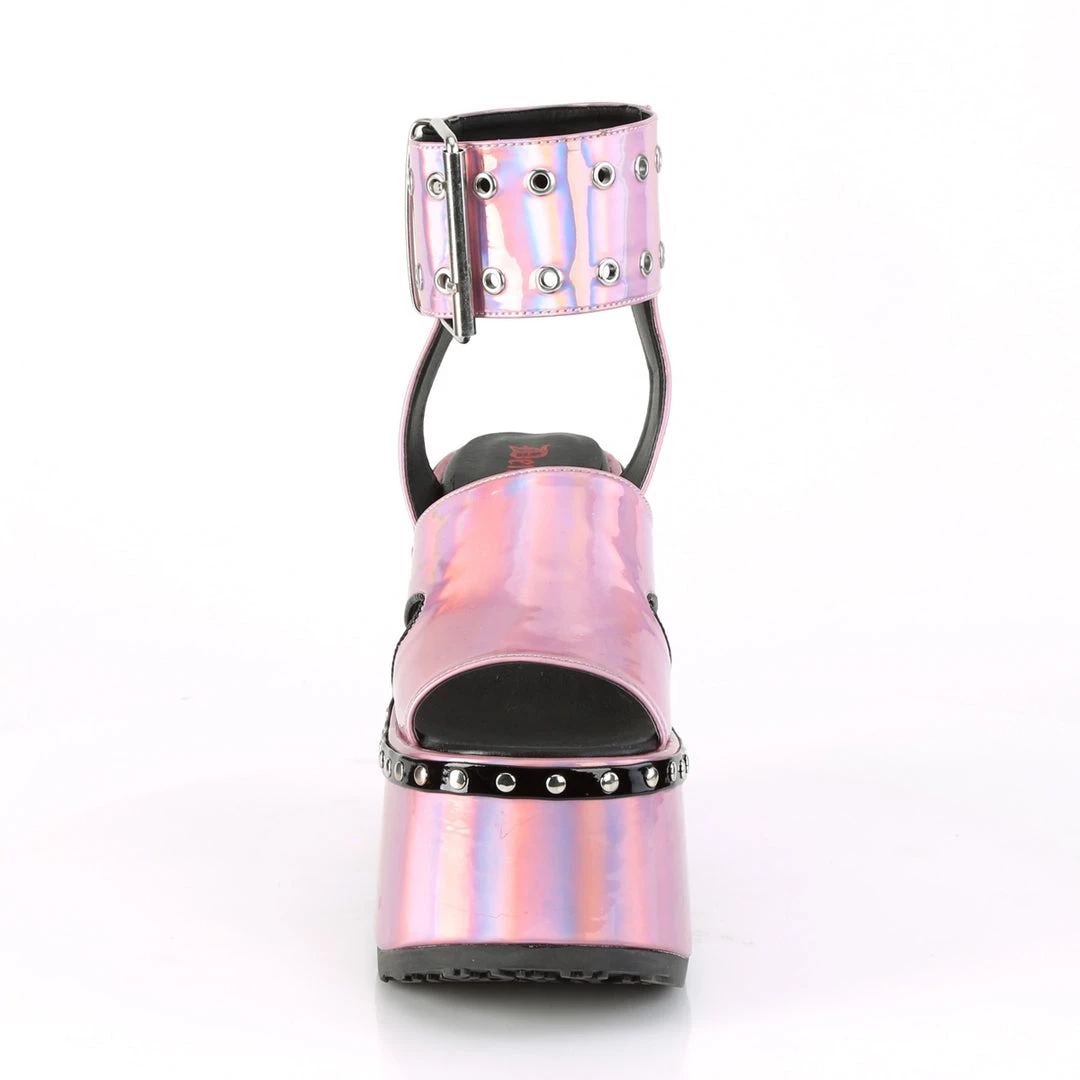 5″ (127mm) Chunky Heel, 3″ (76mm) Platform Ankle Strap Sandal Featuring Silver-Tone Grommet Eyelet Embellishments at Ankle Straps & Contrast Trims Around the Platform Bottom