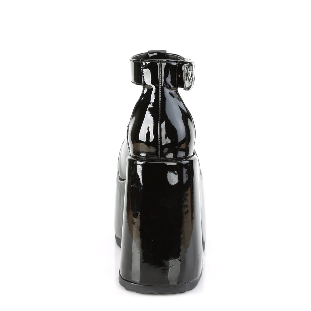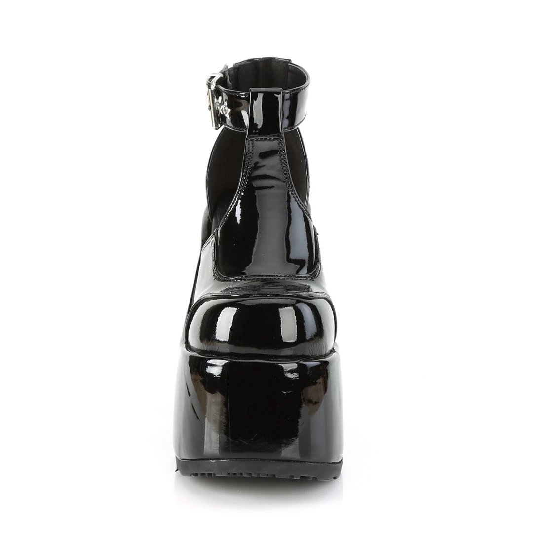 5″ (127mm) Chunky Heel, 3″ (76mm) Platform T-Strap Sandal Featuring Silver-Tone Star Shaped Eyelets at Straps