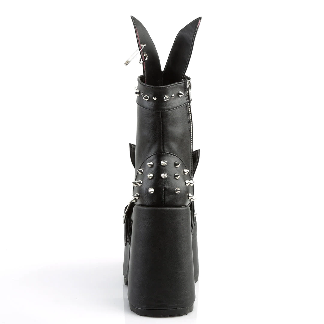 5″ (127mm) Chunky Heel, 3″ (76mm) Platform Lace-Up Front Ankle Boot Featuring Interchangeable Cat/Bunny Ear Design and Spike & Stud Detail, Inside Zipper Closure