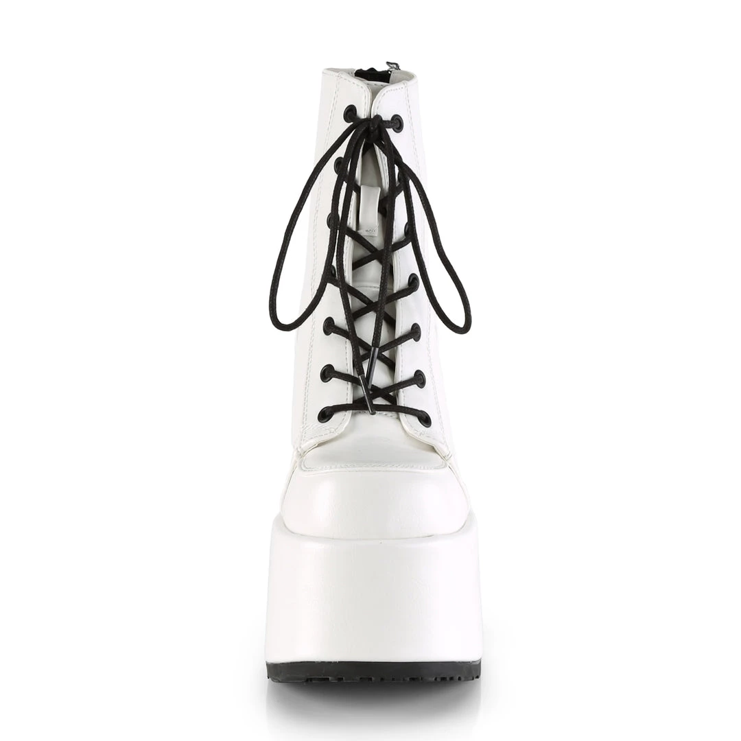 5″ (127mm) Chunky Heel, 3″ (76mm) Platform Lace-Up Ankle Boot, Back Metal Zip Closure