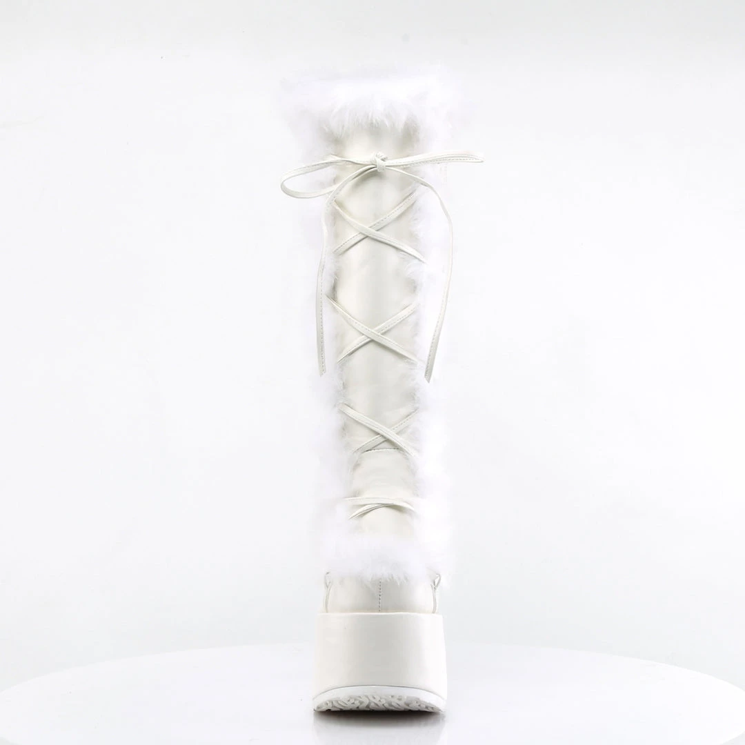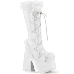 5″ (127mm) Chunky Heel, 3″ (75mm) Platform Lace-Up Knee High Boot Featuring Faux Fur Trim Detail, Full Inner Side Zip Closure