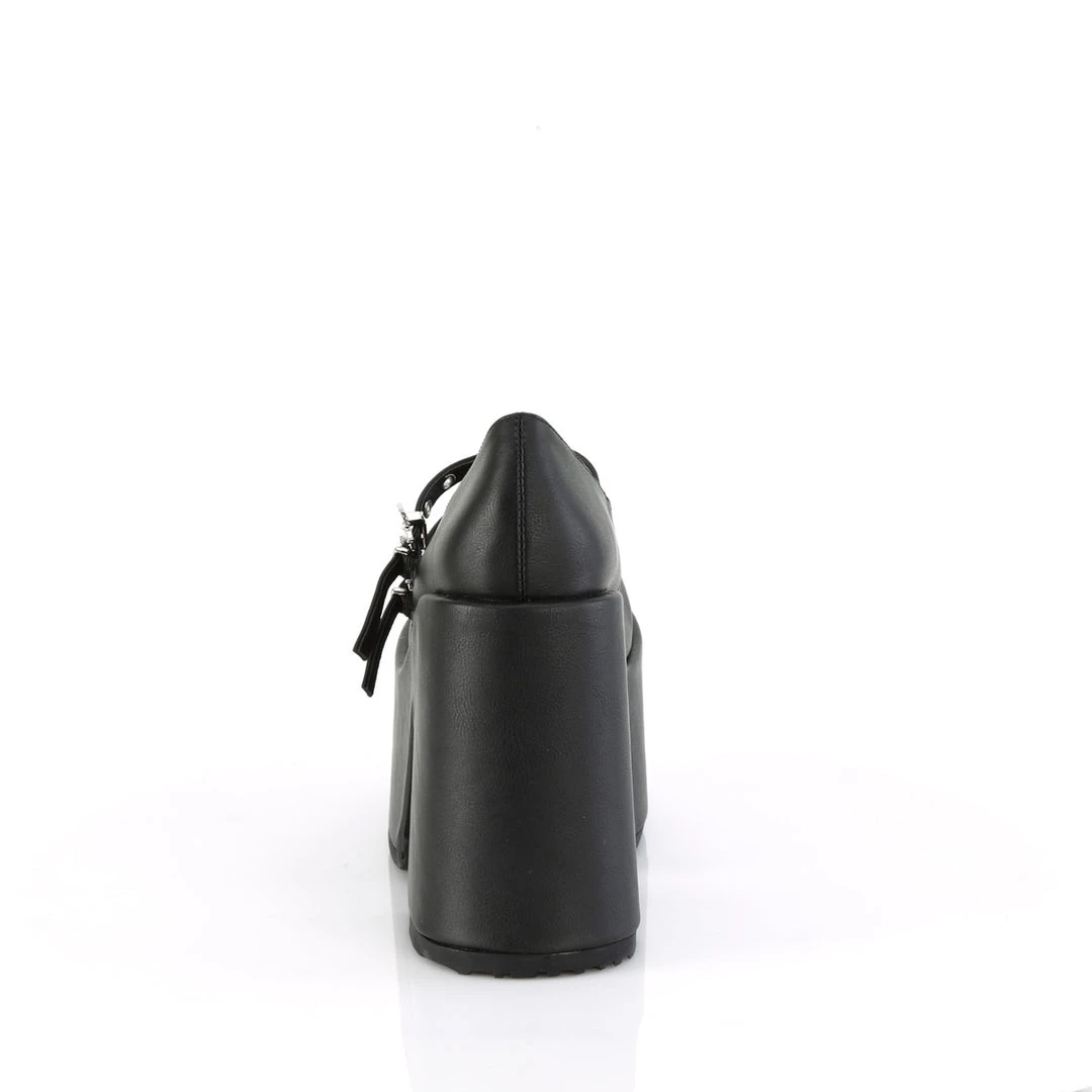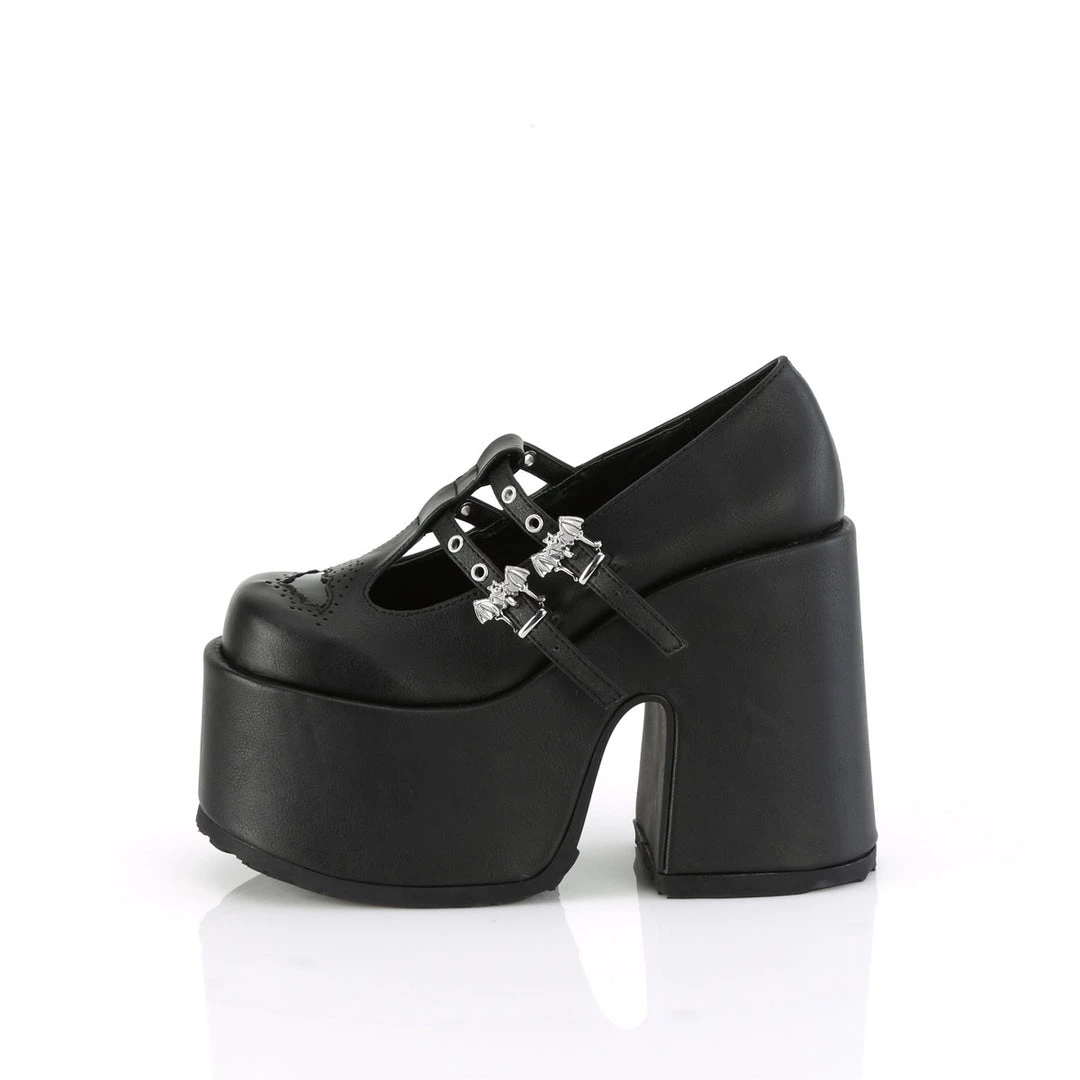 5″ (127mm) Chunky Heel, 3″ (76mm) Platform Double T-Strap Maryjane Featuring Silver-Tone Bat Buckles & Bat Cutout on Vamp