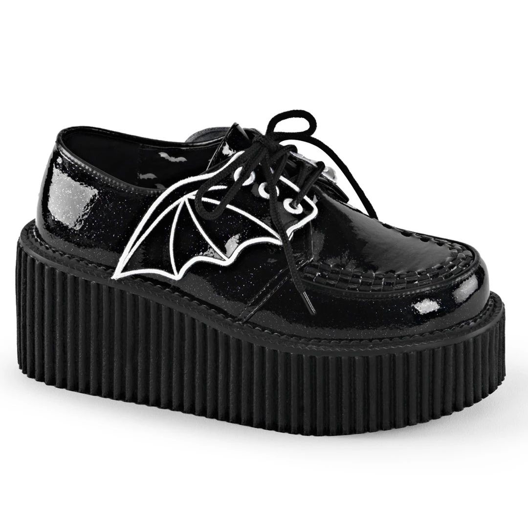 3″ (76mm) Platform Creeper with Detachable Embroidered Bat Wings and Interwoven Apron & Piping Detail