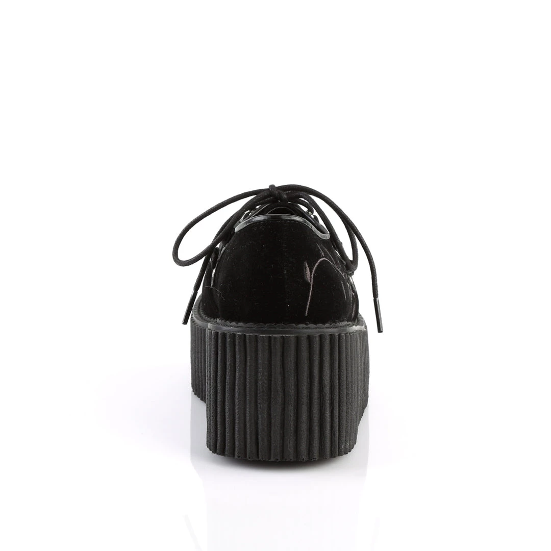 3″ (75mm) Platform Lace Up Creeper Featuring Embroidery Flower