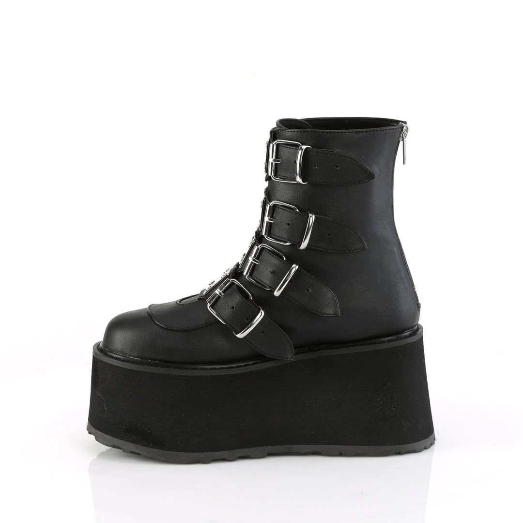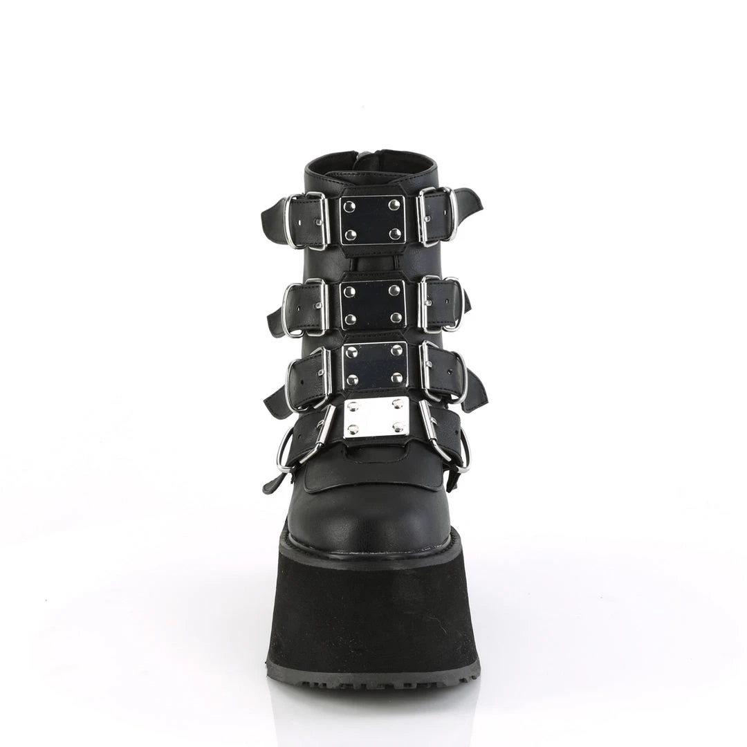 3 1/2″ (90mm) Platform Ankle Boot Featuring 4 Buckle Straps w/ Metal Plates at Center, Back Metal Zip Closure