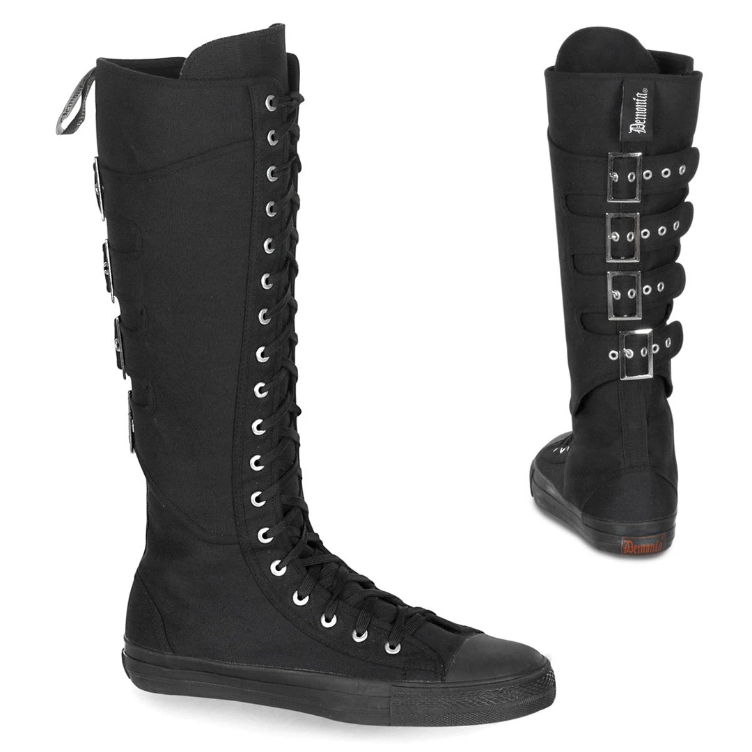 Punk Goth Skater Canvas 4 Calf Buckle Knee Boot Sneaker