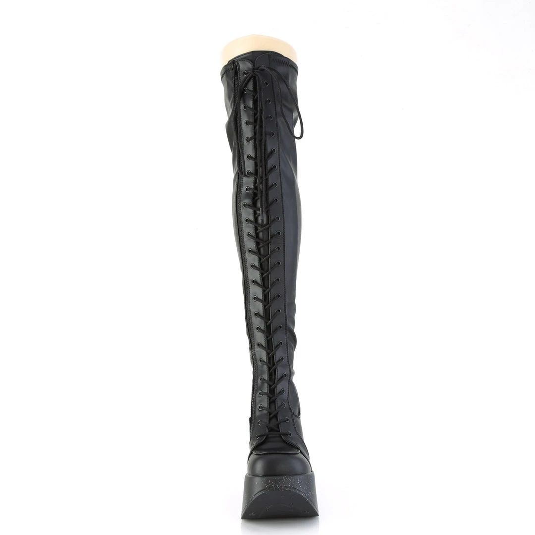 5″ (127mm) Star Cutout Platform Wedge Lace-Up Stretch Thigh-High Boot, Full Length Inner Metal Zip Closure