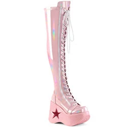 5″ (127mm) Star Cutout Platform Wedge Lace-Up Stretch Thigh-High Boot, Full Length Outside Metal Zipper