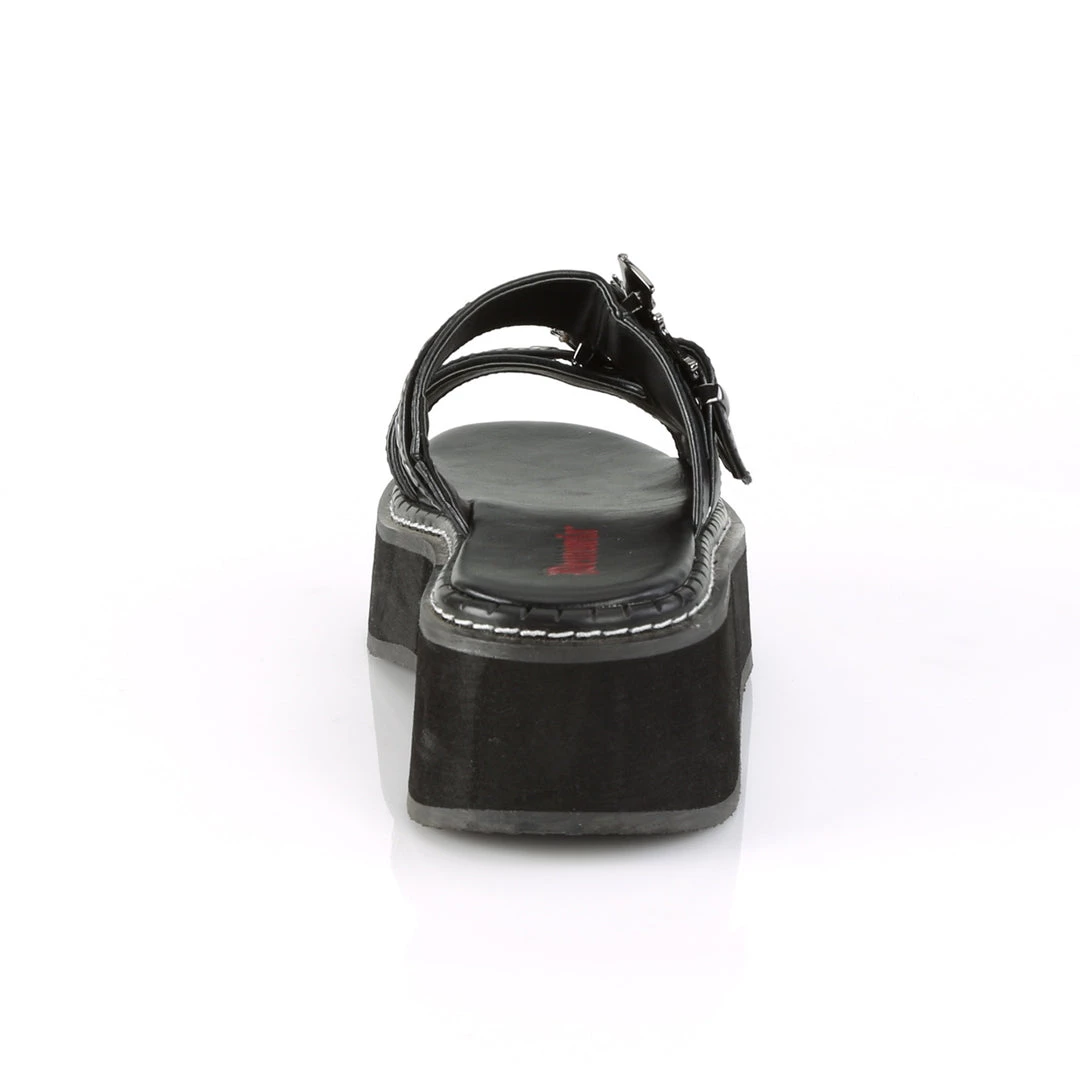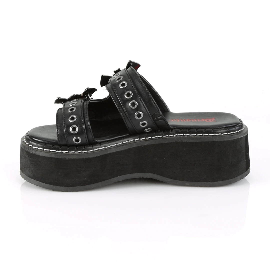 2″ Platform Double Strap Slide Sandal Featuring Riveted Straps and Ornamental Bat Buckles