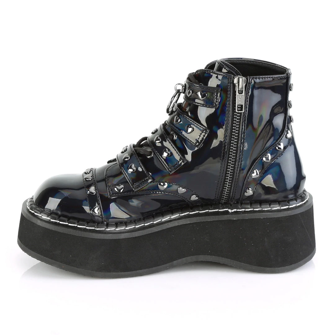 2″ (51mm) Platform Lace-Up Front/ Buckle Strap Ankle Boot with O-Ring on Top Strap & Heart Shaped Stud Detail, Inside Zip Closure