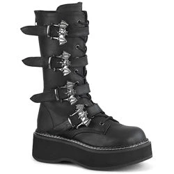 2″ (51mm) Platform Lace-Up Front Mid-Calf Boot Featuring Bat Buckle Straps, Back Metal Zip Closure
