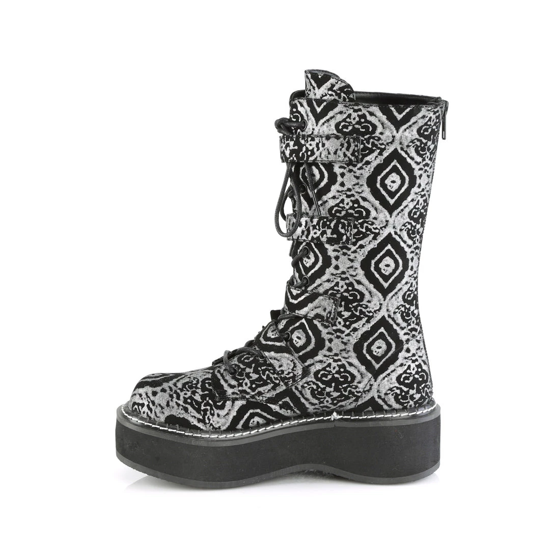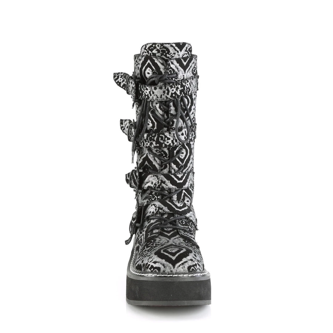 2″ (51mm) Platform Lace-Up Front Mid-Calf Boot Featuring Bat Buckle Straps, Back Metal Zip Closure