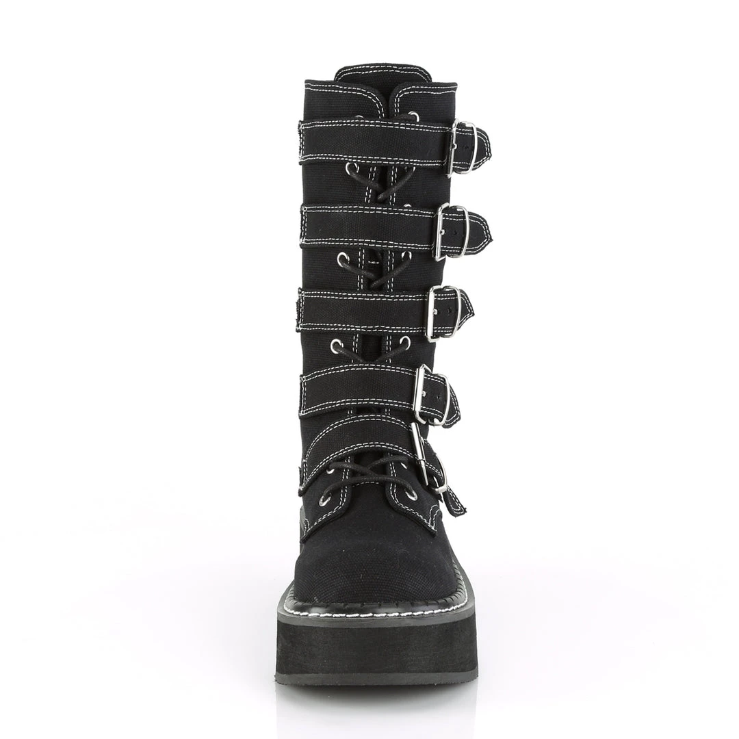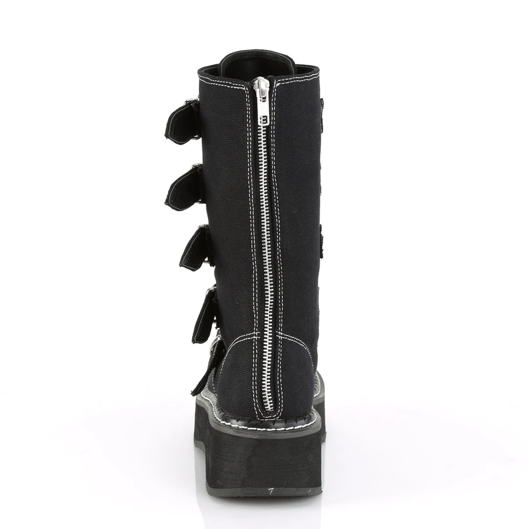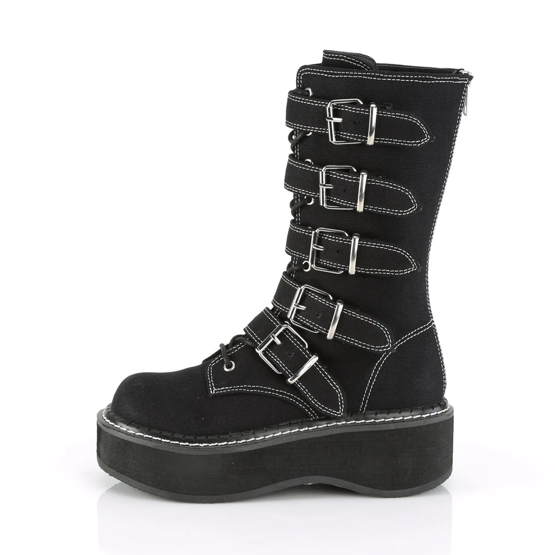 2″ (51mm) Platform Lace-Up Front Mid-Calf Boot w/ 5 Buckle Straps, Back Zip Closure