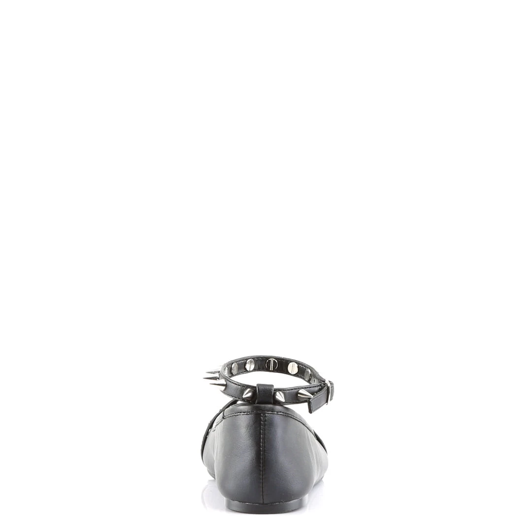 Ankle Strap Flat Featuring Studded Straps and Pentagram Ornament on Vamp and Buckle & Spikes Detail