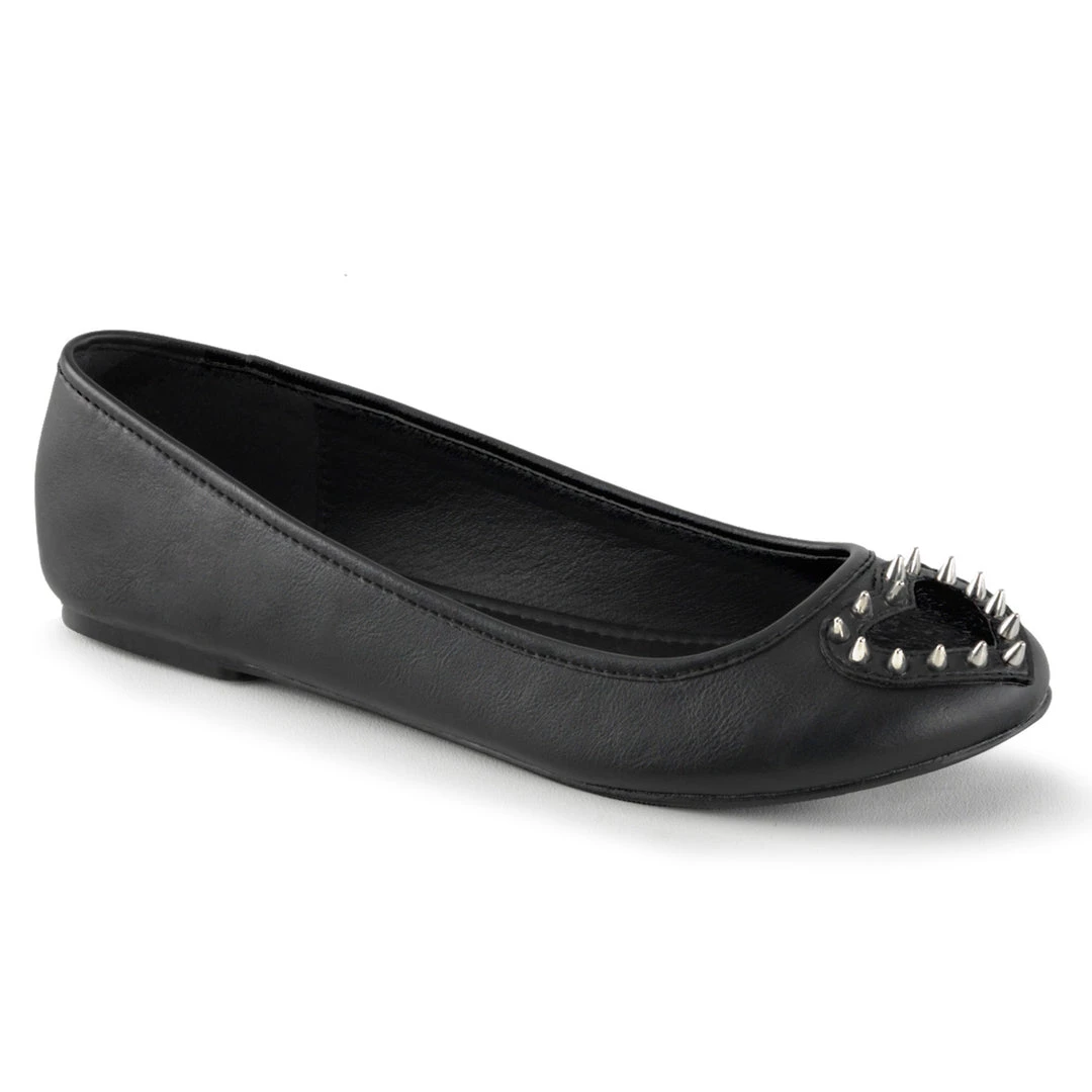 Round Toe Flat Featuring Fury Heart Cutout Design with Pointed Studs Detail