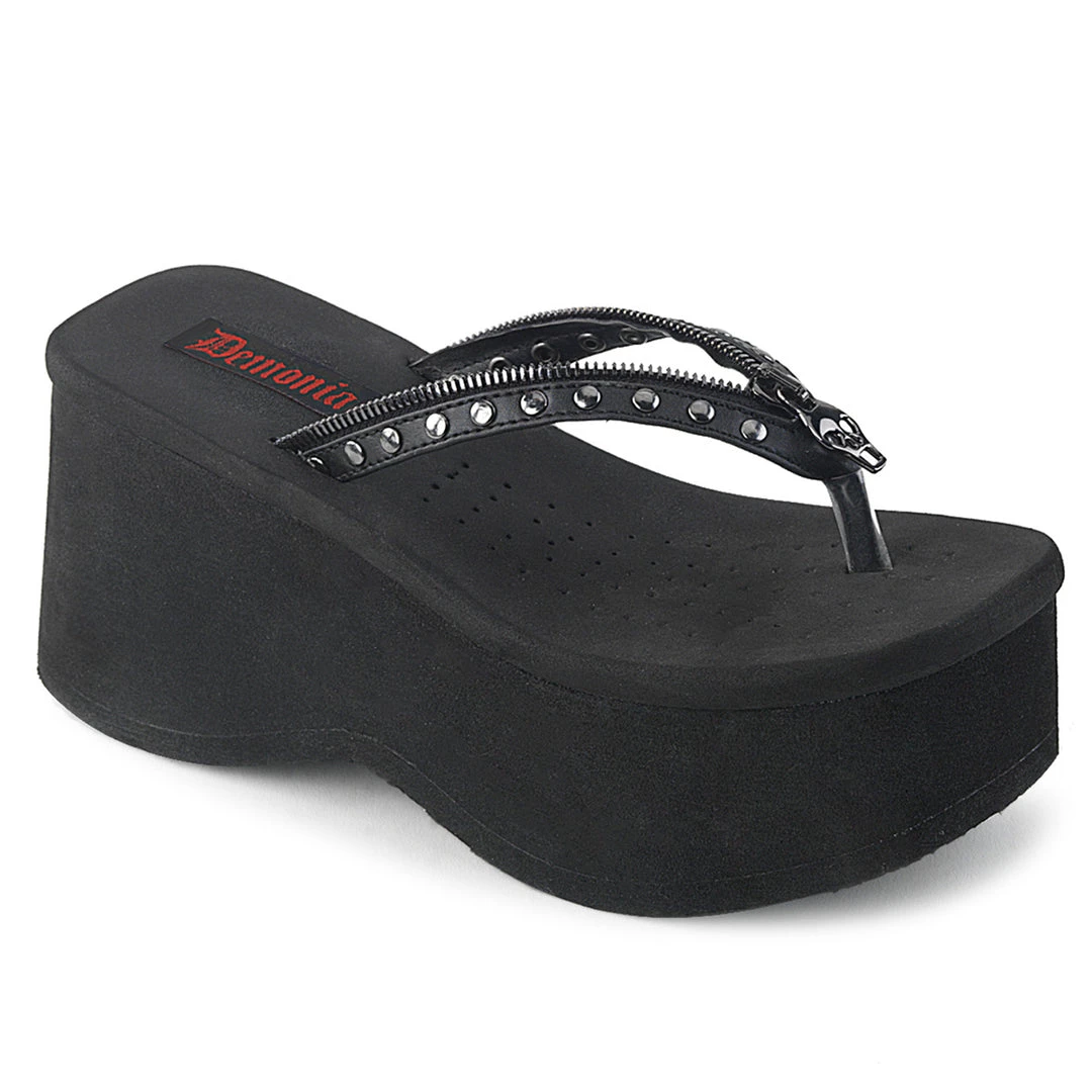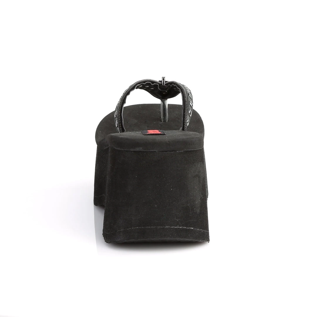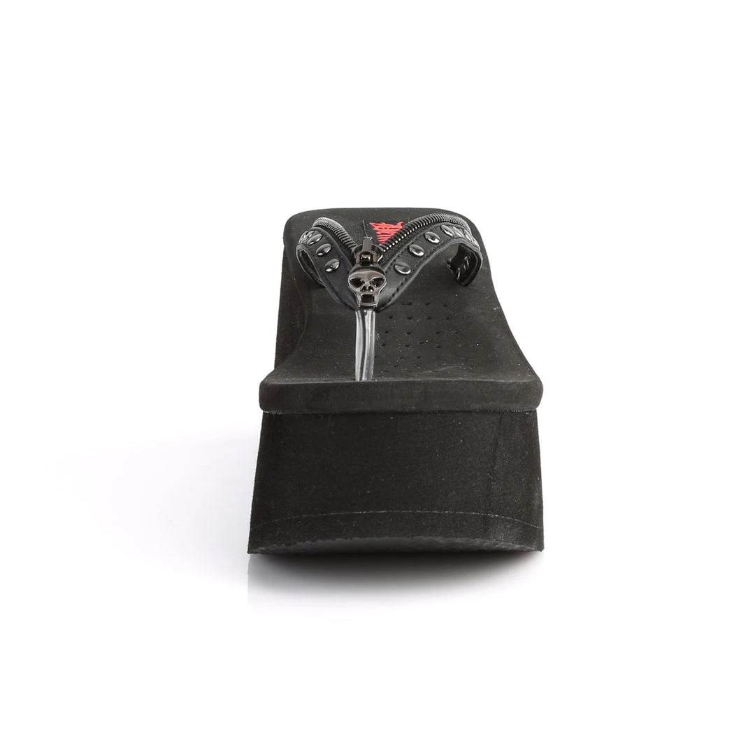 3 1/2″ (89mm) Platform Studded Thong Sandal Featuring Ornamental Zipper Trim w/ Skull Zipper Head