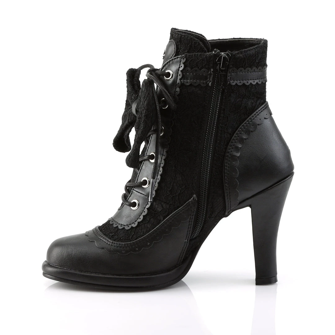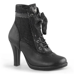 3 3/4″ (9.5cm) Heel, 1/2″ (1.3cm) Platform Lace-Up Front Ankle Boot with Lace Overlay on Vamp Featuring Puffy Heart & Lace Bow Detail, Inner Side Zipper