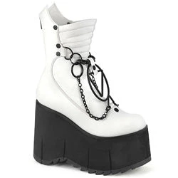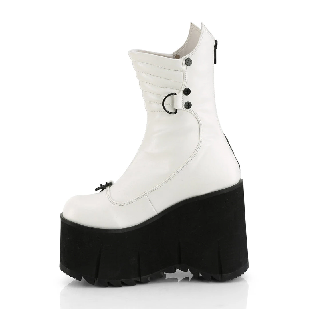 4 1/2″ (114mm) Platform Calf High Boot Featuring Screw Studs, Quilting, and Various O-Ring, D-Ring & Triangle Rings W/ Hanging Chain Details, Back Metal Zip Closure
