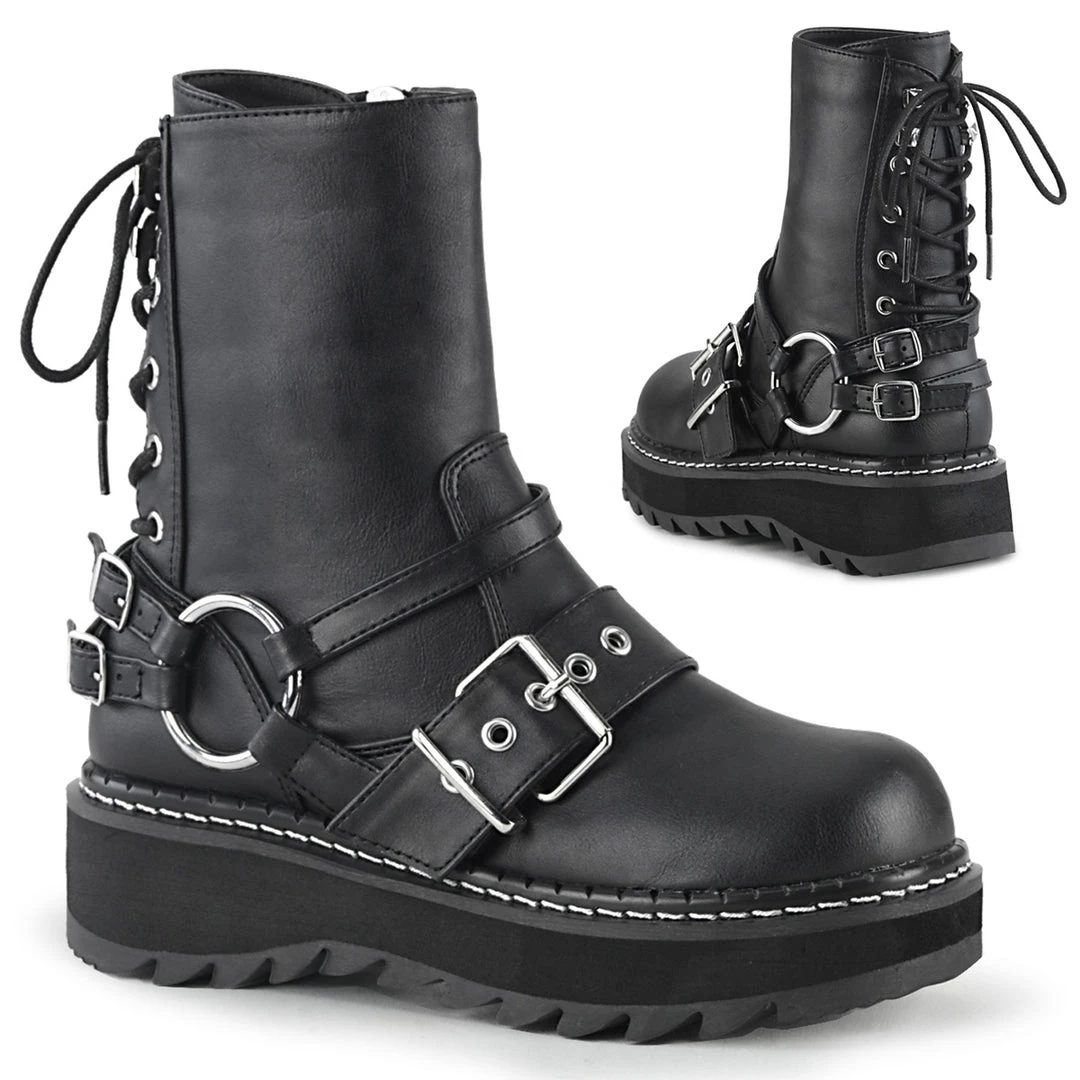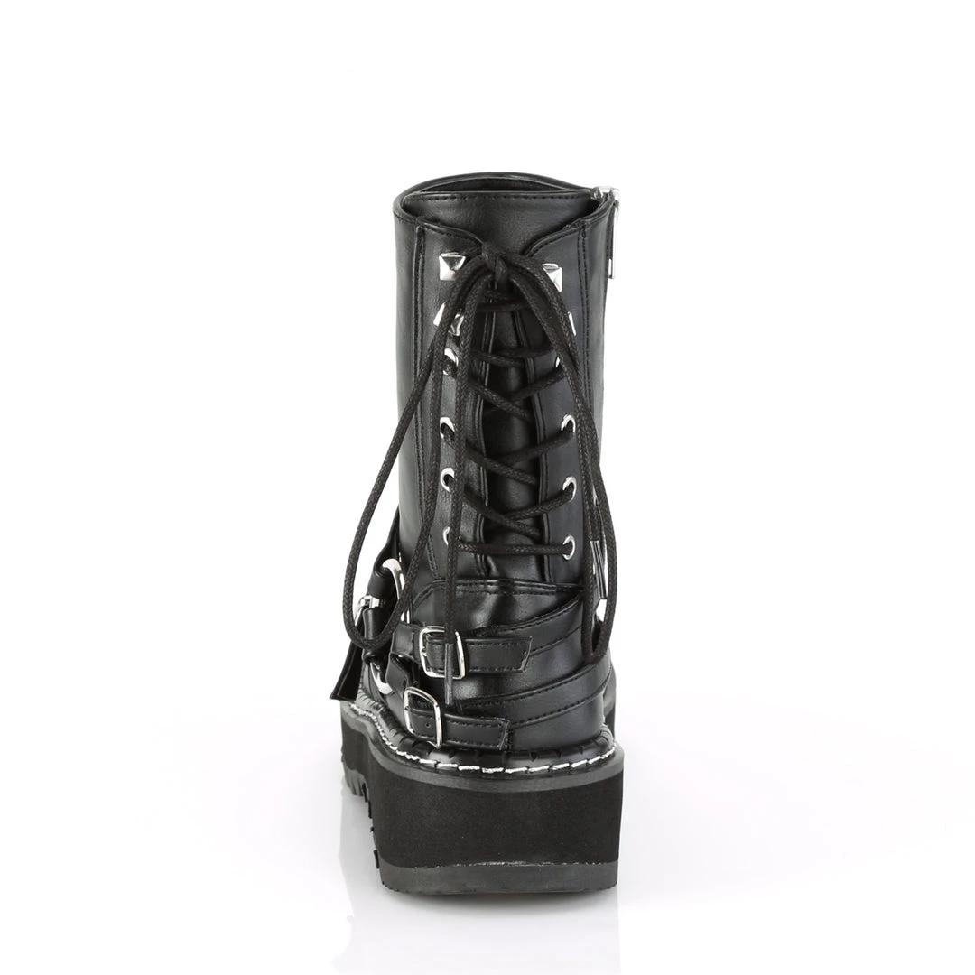 1 1/4″ (32mm) Platform Rear Lace-Up Ankle Boot W/ Contrast White Stitching at the Welt, Inside Zip Closure