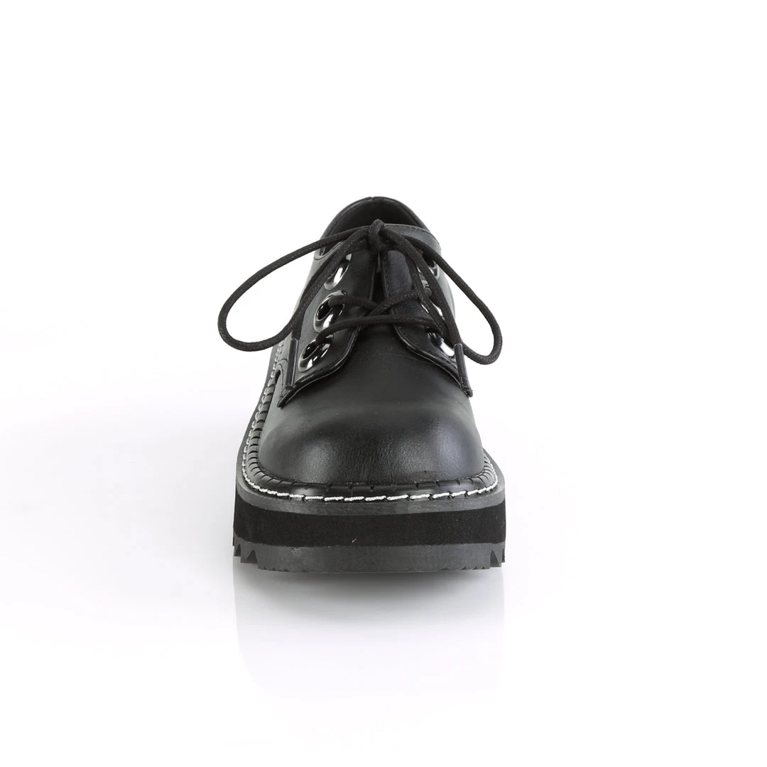 1 1/4″ (32mm) Platform 3-Eyelet Lace-Up Oxford Shoe W/ Contrast White Stitching at the Welt
