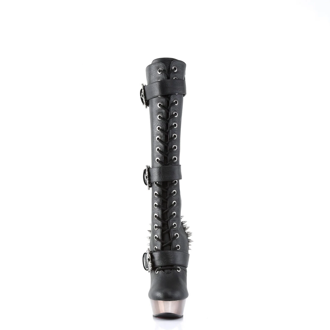 5 1/2″ (14cm) Finger Bone Heel, 1 1/2″ (38mm) Platform Lace Up knee High Boot Featuring Spiked Studding on Back of Ankle, Side Zip