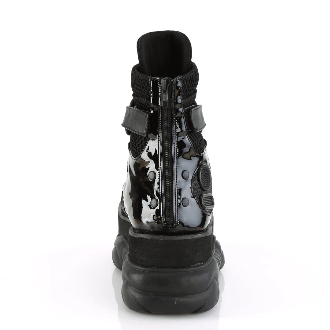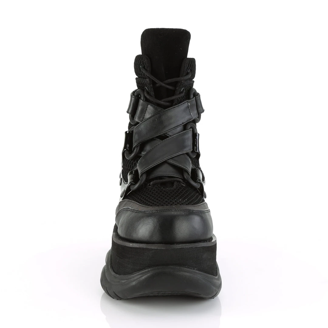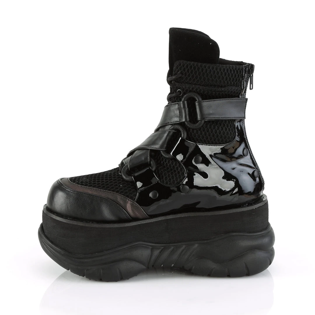 3″ (76mm) Platform Lace-Up Criss-Cross Strap Ankle Boot Featuring Hook N’ Loop Closure & Ventilator Detail on Outside, Back Zip Closure