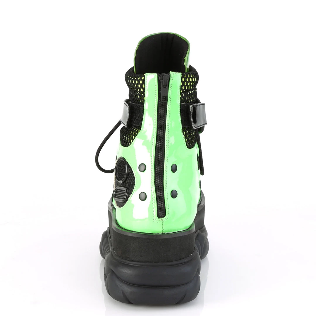 3″ (76mm) Platform Lace-Up Criss-Cross Strap Ankle Boot Featuring Hook N’ Loop Closure & Ventilator Detail on Outside, Back Zip Closure
