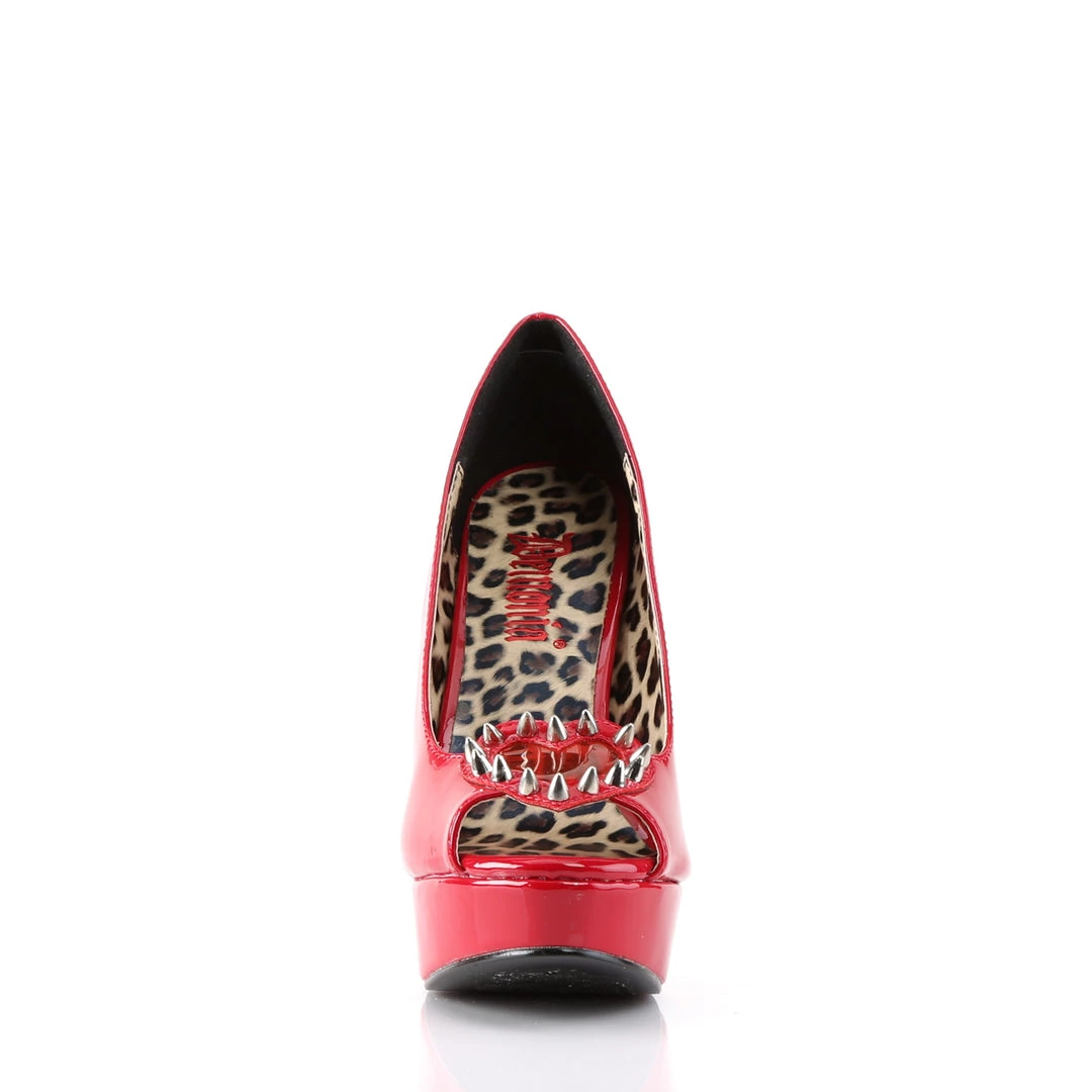 5 1/4″ (133mm) Heel, 1 1/4″ (3.2cm) Platform Peep Toe Pump Featuring See-Through Heart Cutout Design and Pointed Studs Detail