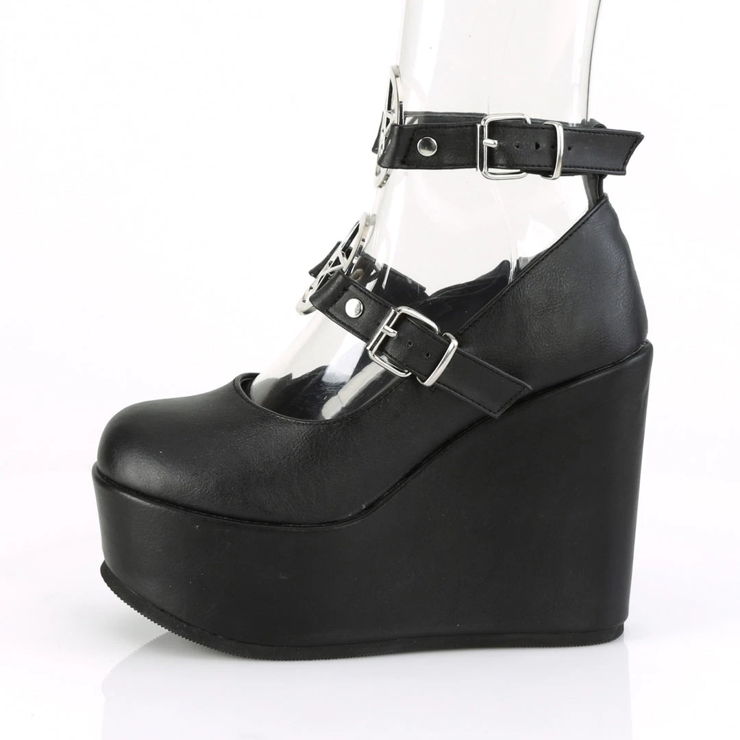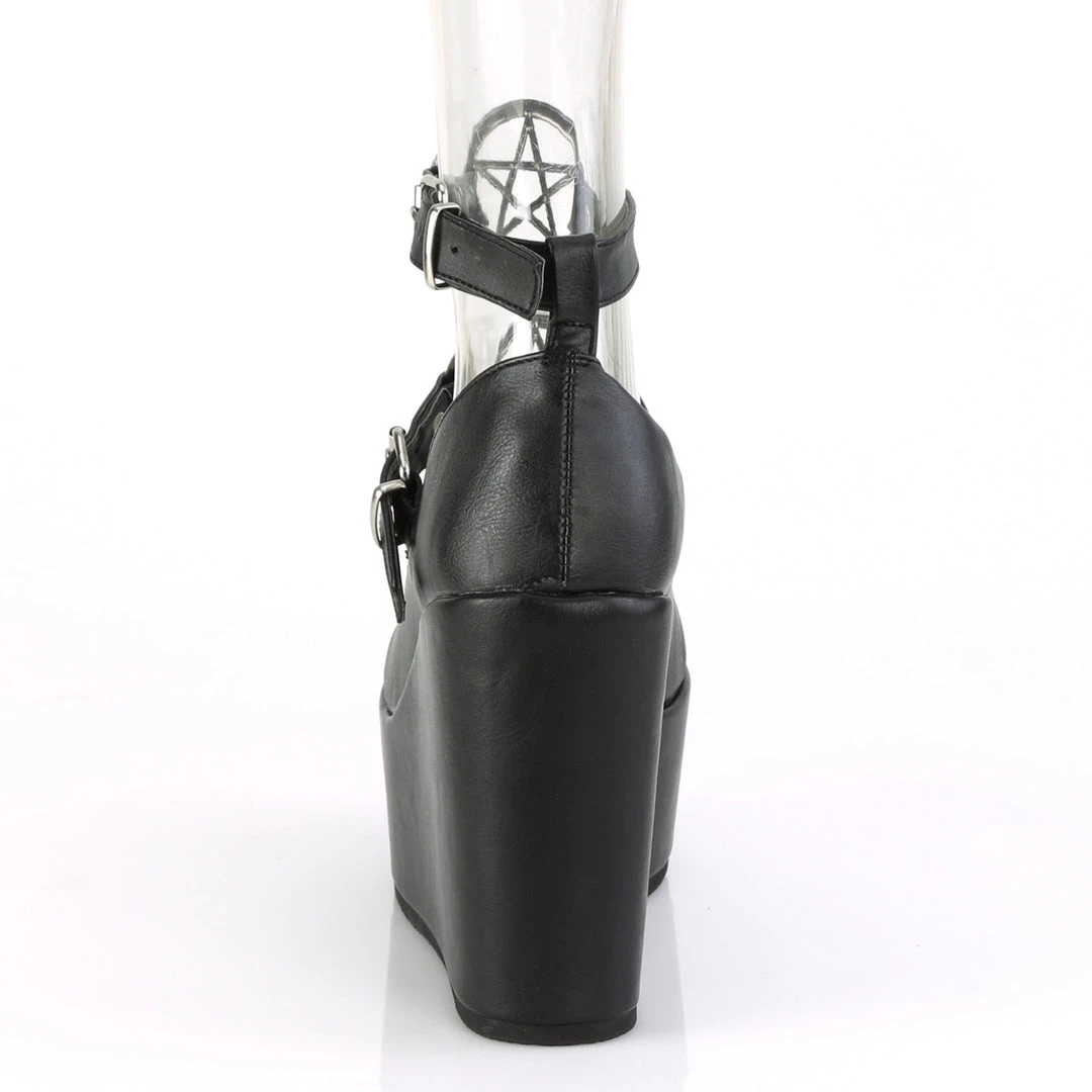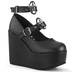 5″ (127mm) Wedge Platform Mary Jane Featuring Dual Buckle Straps W/ Pentagram O-Ring & Stud Detail