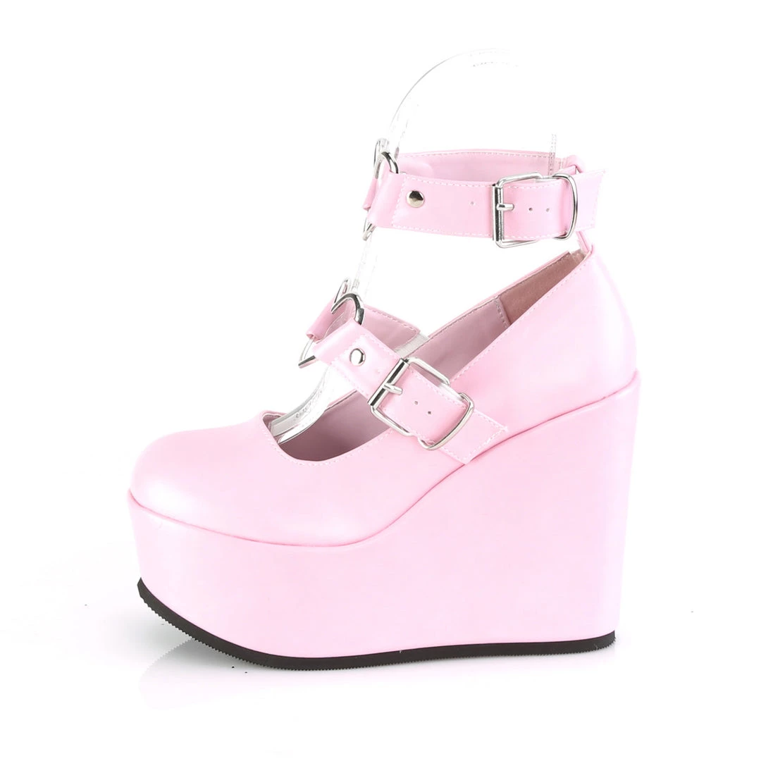 5″ (127mm) Wedge Platform Mary Jane Featuring Dual Buckle Straps W/ Heart O-Ring & Stud Detail