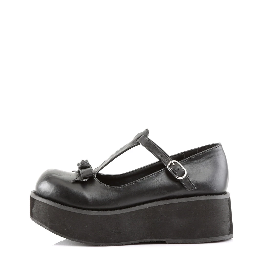 2 1/4″ (57mm) Platform T-Strap with Bow On Vamp and Buckle Detail