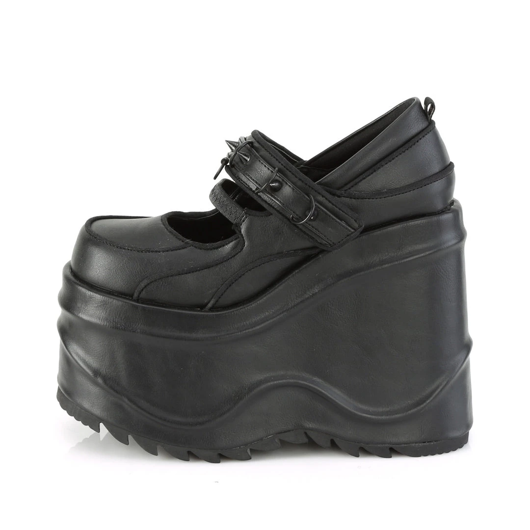 6″ (152mm) Wedge Platform Maryjane Featuring Elastic Instep Strap & Hook & Loop Strap W/ Cone Spike Stud & D-Ring Details