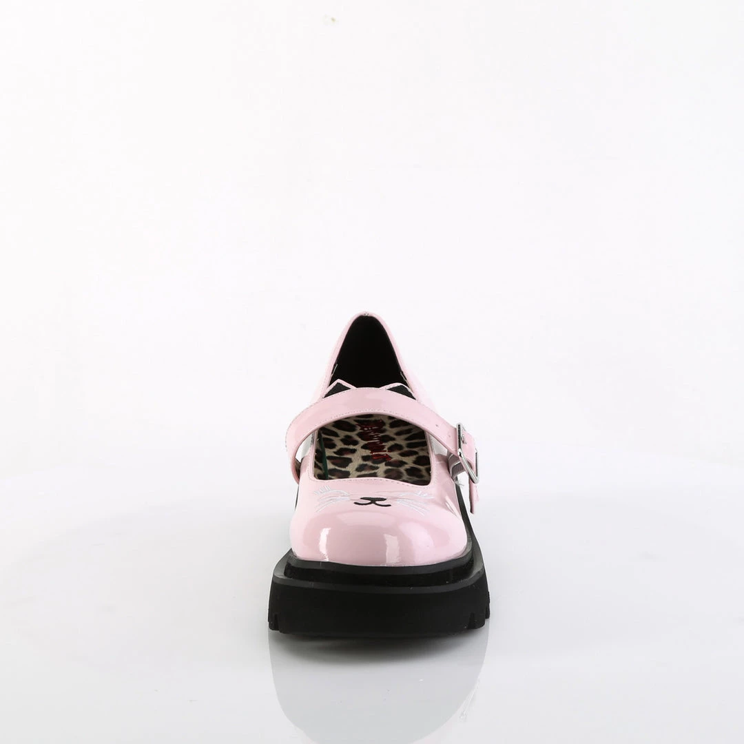 2 1/2″ Tiered Platform Maryjane Featuring Embroidered Cat Face on Toe and Ears on Strap