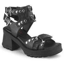 2 3/4″ (70mm) Chunky Heel, 1″ (25mm) Platform Double Buckle Ankle Strap Sandal Featuring Heart Ring and Studding Details