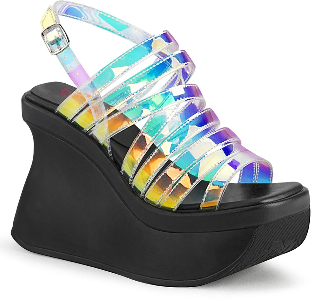 4 1/2″ (114mm) Wedge Strappy Platform Sandal Featuring Asymmetrical Slingback Straps